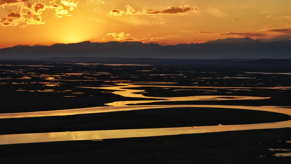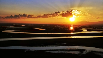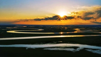 终补两年前的遗憾,得见巴音布鲁克的日落,斜阳余晖洒在九曲十八弯上,壮美不已