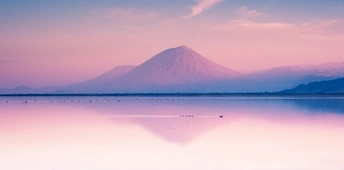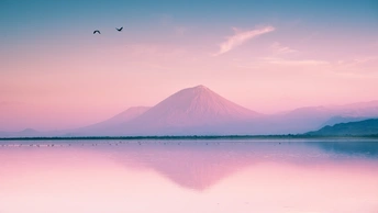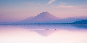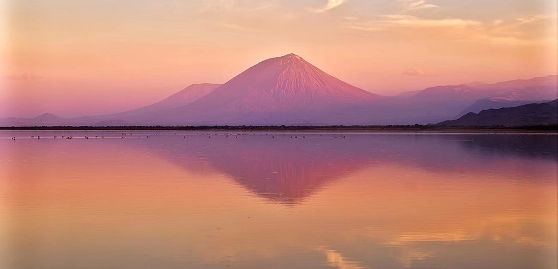 夕阳下的伦盖火山,呈现出一种迷人的玫瑰粉色,太醉人了!