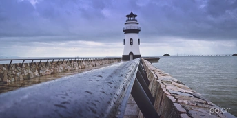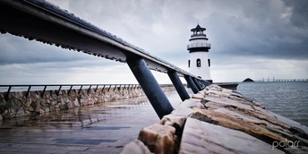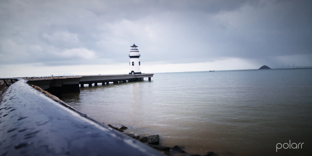 清晨跑到无人的海滩,拍摄了雨中的灯塔。