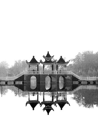 华为P10拍摄,水面上下对称,亭子左右对称,一个很普通的公园,每次都从侧面路过,这次找到了最佳角度,拍了很多张,等了很久,终于等到两个人!