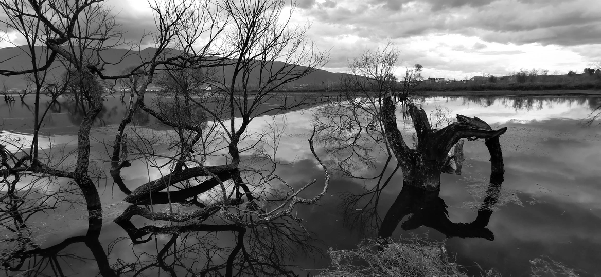 大理的鹤庆就是一个多水的地方,所以水边的景色就都很漂亮。鹤庆的黄龙潭除了水,还多了许多水中很有意味的树,所以这种水墨效果的美就更有诱惑力了。