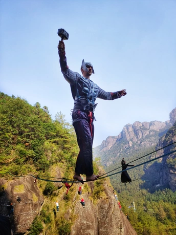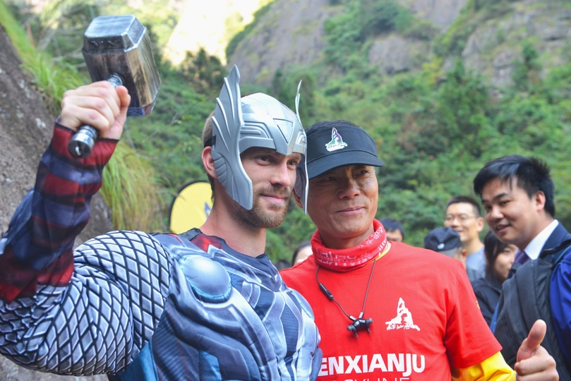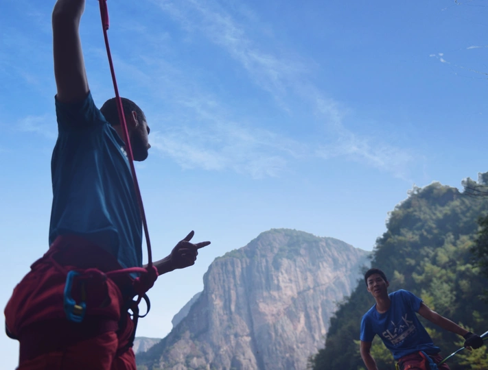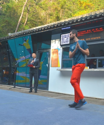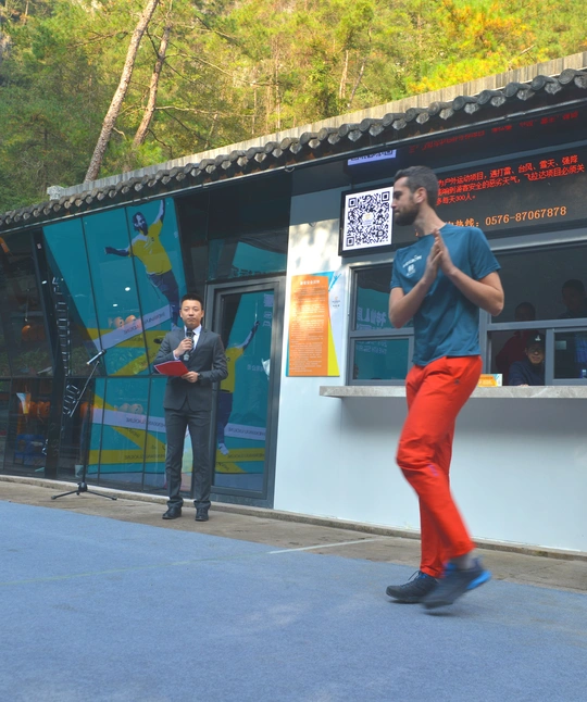 ☄️历时两天的神仙居全球扁带赛圆满落幕☄️活动第一天早上,我出发对接带领了开幕式要进行表演的演员们进场!此次扁带高空竞速赛决赛冠军是世界速度赛排名第一的法国选手Nathan Paulin(南森·波林)。作为后辈,我要加油。
