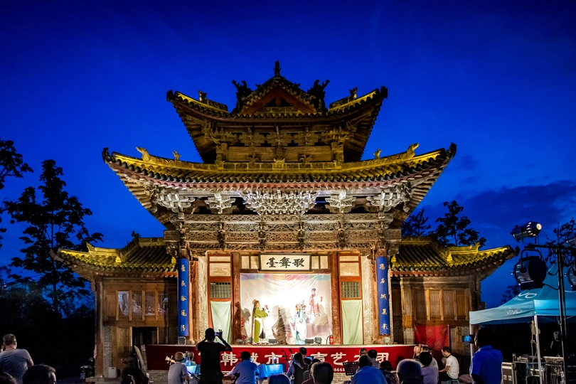 陕西省渭南市韩城市老城 古戏台上一出现代戏正在上演