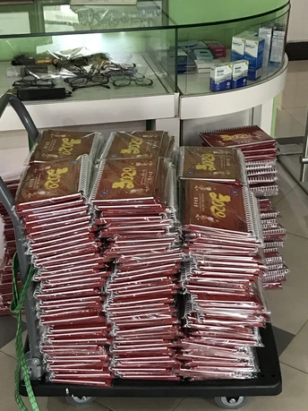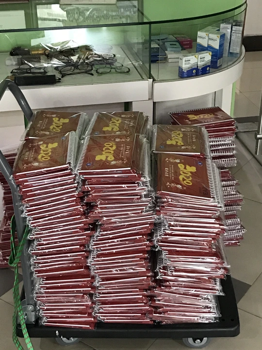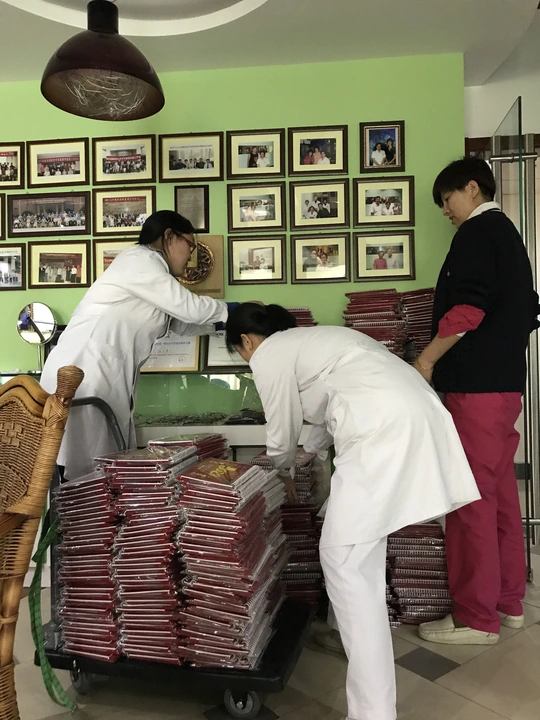 单位印的台历有点儿小瑕疵,大家一齐动手把它改过来了。1500本台历两个小时完成✅。你们太能干了。为你们点赞👍