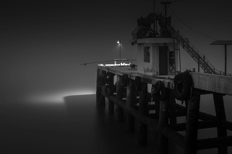 雾 码头 一盏灯