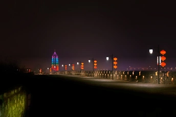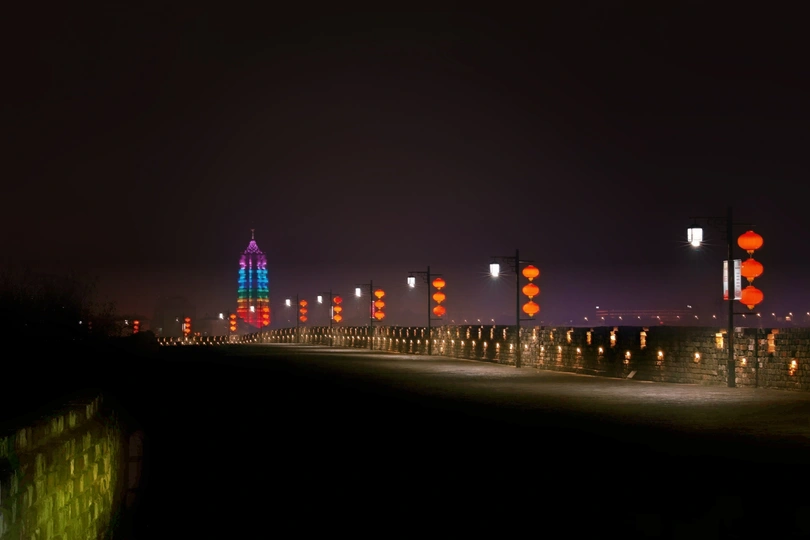 南京大报恩寺琉璃宝塔和古明城墙上的灯光遥相呼应。