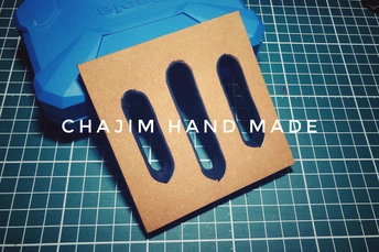 挖槽儿这点事儿 看似简单的九层结构, 折腾了大半天才挖好这三个槽子。 2mm厚的牛皮纸板不是一般硬, 中型美工刀要9刀才能完美切割。 戴上MECHANIX防护手套, 手握STANLEY重型全金属美工刀, 倚靠在NTCUT防护尺下也要4-5刀才能够完美切割, 挖槽儿是个力气活~也是个技术活~ 两边圆角是用15mm浅圆斩(1/4圆)捶打出来的, 在不伤斩的情况下每次要捶打2-3次方能完美切割。 整型。。。修边。。。 挖好的槽洞从外至内, 以每层0.5mm进行缩进, 没错整体是个立体弧面。 纸板和皮糠纸不能打磨, 只能靠极锋利美工刀一刀刀的铲修, 直到表面平滑细腻如丝[色] 终于可以包皮子了~[流泪] 底面、立面、顶面全部包裹, 只能靠拼啊~一点点拼[擦汗] 裁剪要精细才能完美的隐藏接口[奋斗] 此处隐去500字。。。 简单讲了下流程。 其实,这只是一个实验品。 所以,请忽略其中的不完美细节。 成品这部分将是十层结构, 十全十美, 必须完美呈现。 友人定制,敬请期待。。。