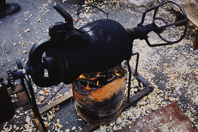 在后街遇到了爆爆米花的大爷。 这个大爷脾气不大好,有个大叔来买爆米花,挨个用手碰了碰,可能是想摸摸还热乎不。大爷凶凶地操着不知道哪里的口音说,你碰啥子碰都是上一锅刚爆出来滴今天根本不够卖,你买不买我要收摊捏。 大叔:买买买,买了买了。 我也跟着买了一袋,买完后大爷就真的收摊了,跟那些喊着清仓甩卖最后三天的虚假宣传不一样,大爷是真实诚。 爆米花也是真好次。