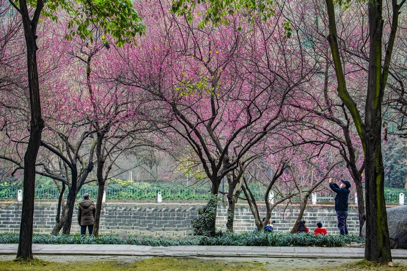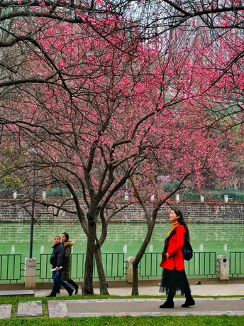 成都冬天无严寒,小寒节气来临之际,五丁桥的红梅开始绽放,为成都的2020添上一道红色风景线。
