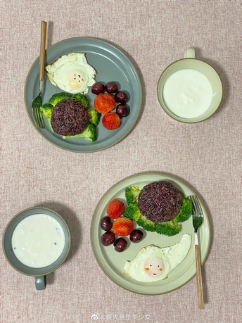「小来哥&袁大雅的二人餐」 早起煎了鸡排做午饭 剩下的肉丁儿也别浪费啊 团个饭团子 这不早餐也解决啦 早安 记得按时吃饭 🍙