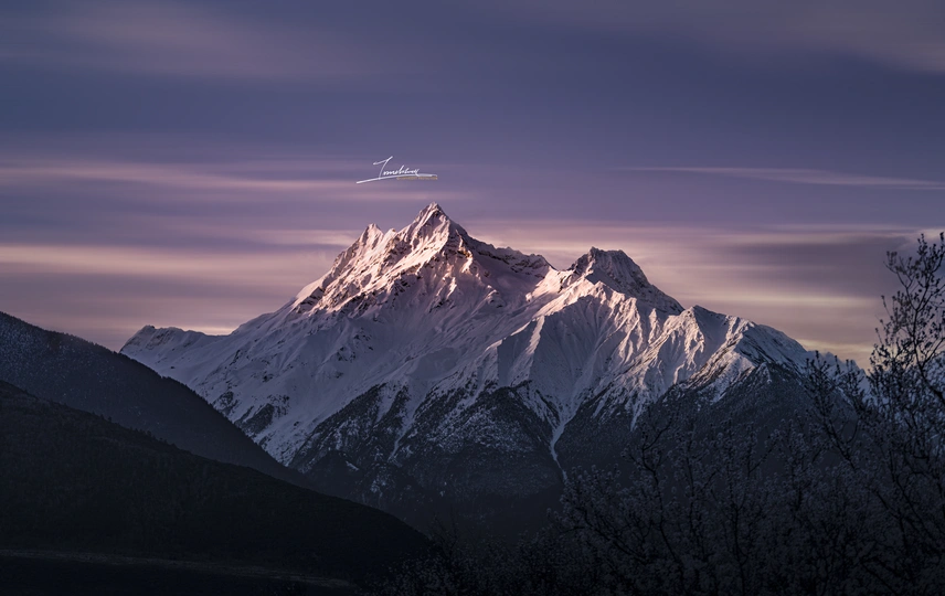 紫霞照雪山