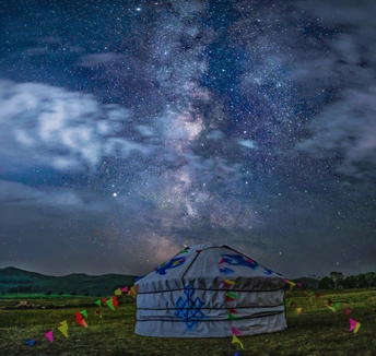 草原的夜晚 风把云雾吹散 银河依然挂在天空