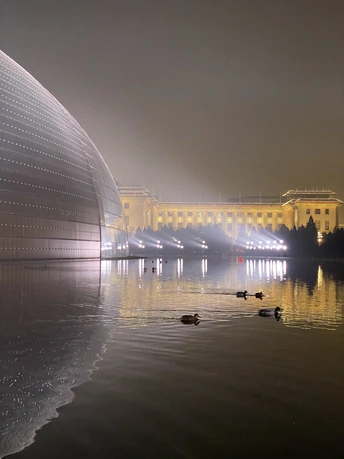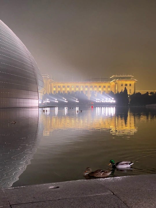 昨天北京严重污染,空气雾蒙蒙的。晚上的国家大剧院。在灯光照射下是不是有一种朦胧美?