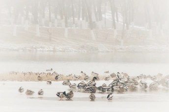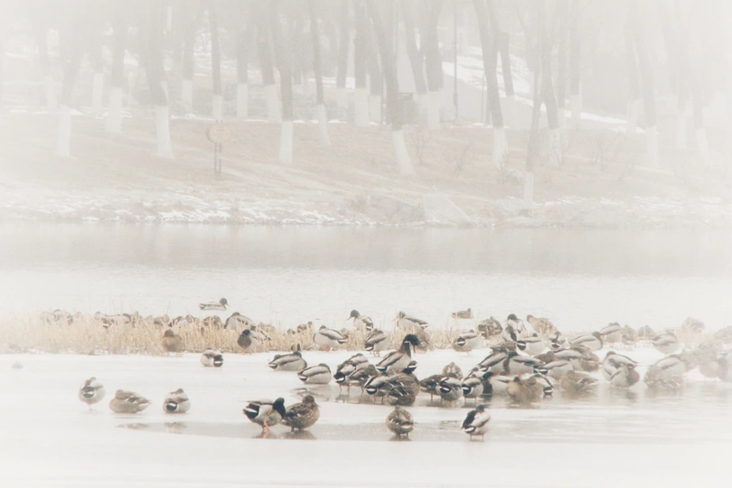 冬天的南海子简直是鸟的天堂,几乎没有人,而有一大群一大群的绿头鸭。