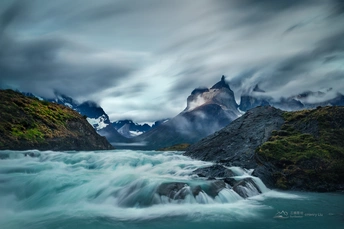 之所以称之为录,因为这不是单张片子一次快门的成像,这是100张片子记录下的云的动态,通过堆栈的方法来表现。风和云,再加上百内独特的山峰,是这里最显著的特征。