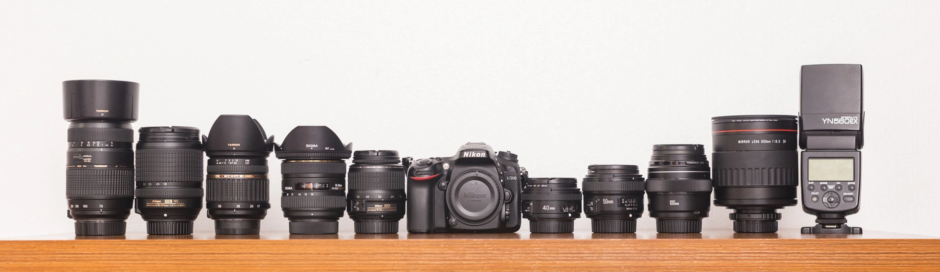 闲来无事,拍了自用的老尼康全家福(不完全,摆不下了)。 看着很唬人,然而都是便宜货。