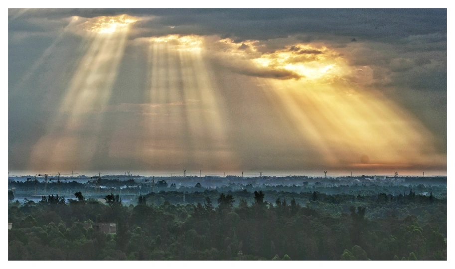 [FZD22]宅家晨起看着满天的乌云,心里又增加几分沉重,边漱口边看电视,突然间看见天空出现了漏光,感到希望来了,希望就在前面……。