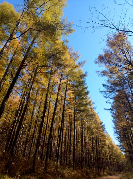 那时的牡丹峰已脱下生机勃勃,那时的牡丹峰已叶落秋风瑟。印象最深的就是松针铺满了每条路,我们两个人被跳进鞋里的松针扎的“无比愤怒”。——牡丹峰