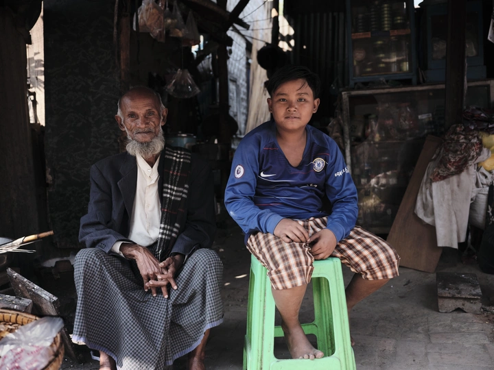 坐在家门口的穆斯林父子