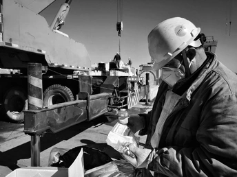 施工现场抓拍一位工人师傅仔细查阅工作资料。