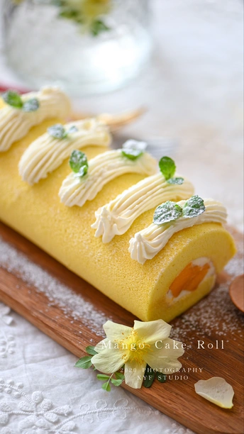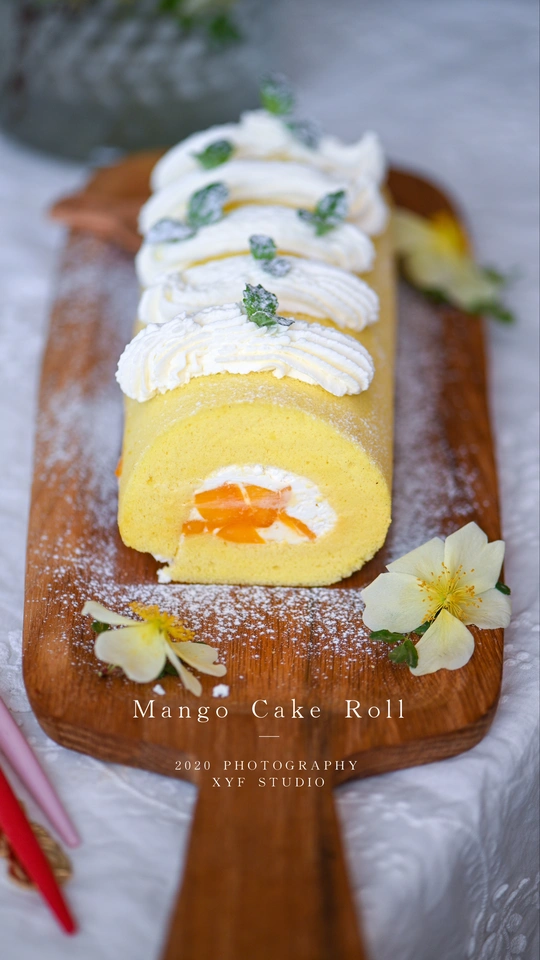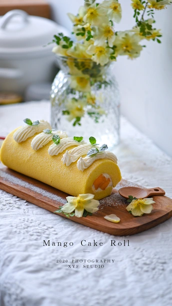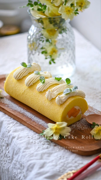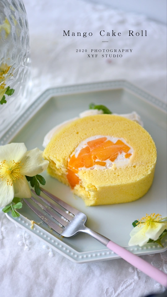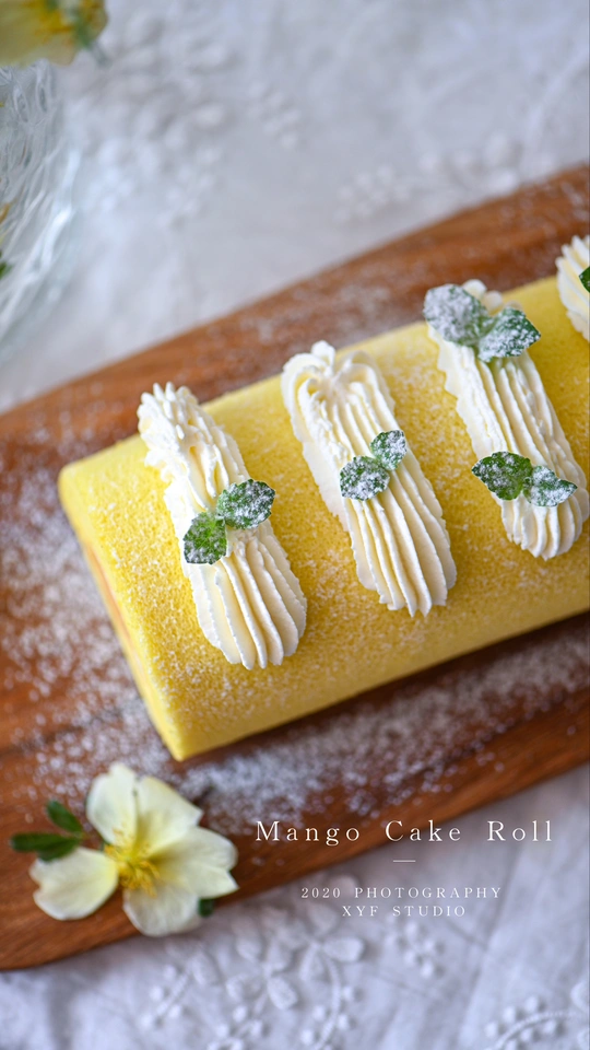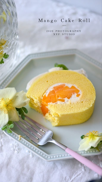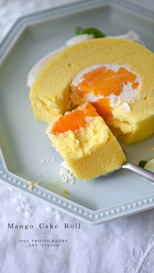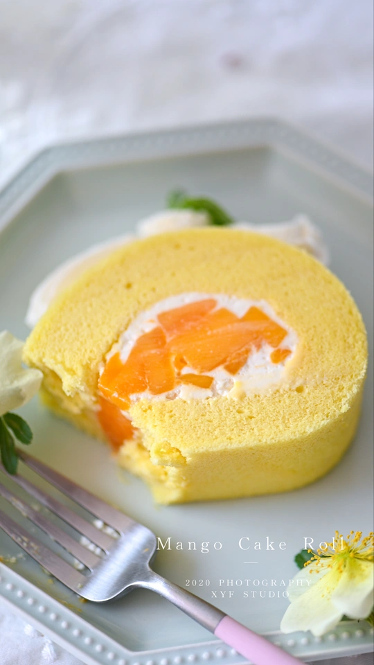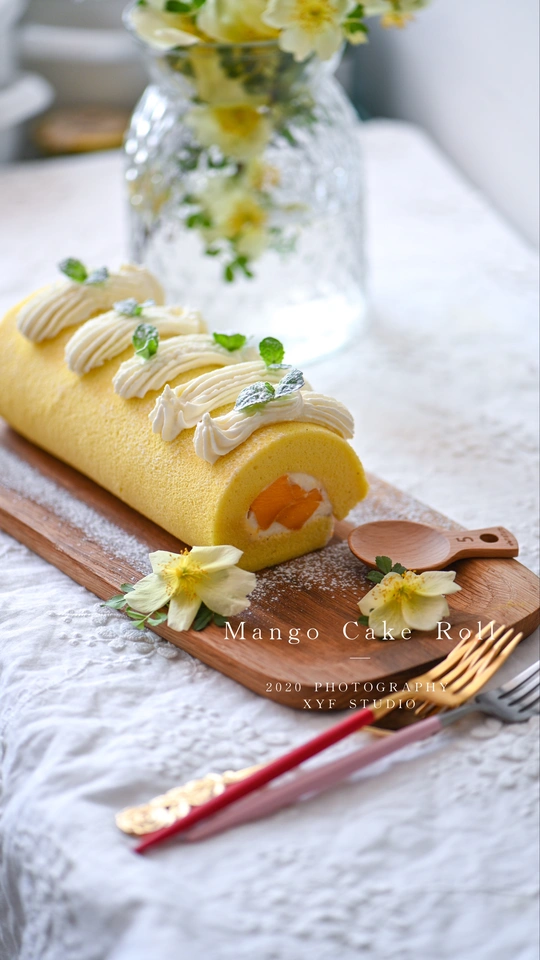 周末来了!烤了美貌又美味的奶油芒果蛋糕卷!非常好吃!像棉花一样柔软!@米拍