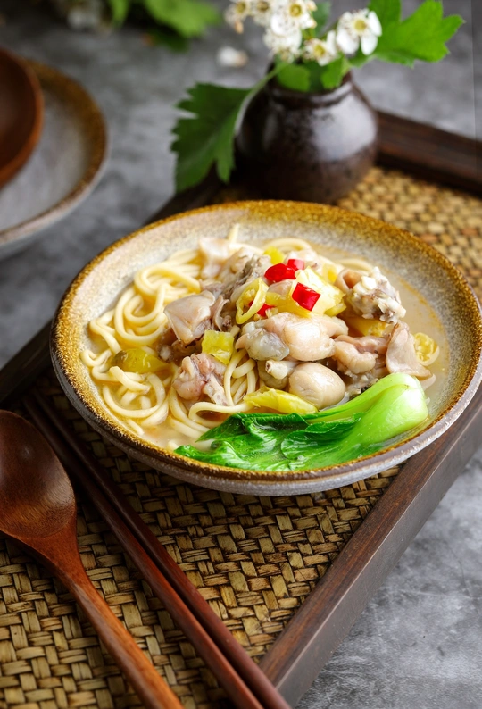 一碗面,从面粉到面条的过程是食物最基础的转换而得到的升华,面条可丰可俭,我分别做了,浓汤海鲜面,雪菜肉丝面,老坛酸菜牛肉面,酸汤牛蛙面,椿芽鸡丝拌面。