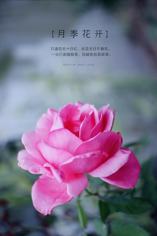 《腊前月季》 宋 · 杨万里 只道花无十日红,此花无日不春风。 一尖已剥胭脂笔,四破犹包翡翠茸。 别有香超桃李外,更同梅斗雪霜中。 折来喜作新年看,忘却今晨是季冬。 摄影365天 第50天 •《花卉摄影:月季花》 拍摄于深圳 摄影日期:2020-4-18 摄影器材:佳能EOS M50 【摄影梦想课堂·手机摄影美学】 想法:练习花卉摄影 拍摄者:微笑莲