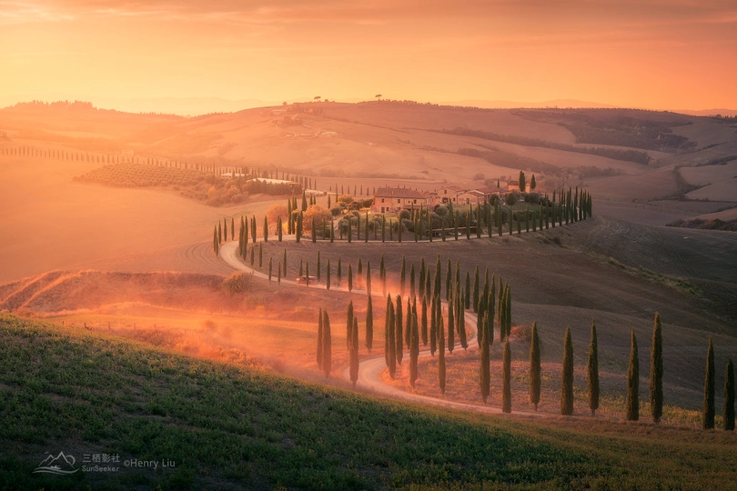我们在这里等了很久,画面线条很美,光线也很棒,但缺乏一点动态元素。眼看太阳就要下山了,久等不是办法。于是将相机设置成200张间隔拍摄,每秒一张,然后将遥控器交给自己的一个学员。回到马路上发动我们的九座奔驰休旅车,一脚油门,轰出一路滚滚红尘....