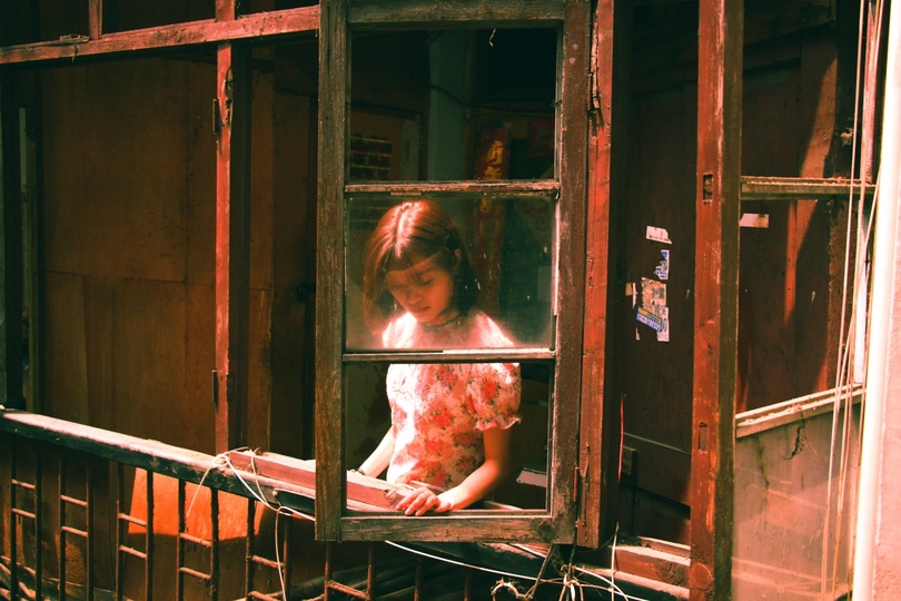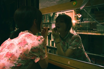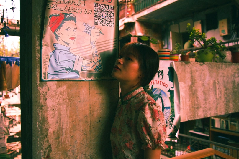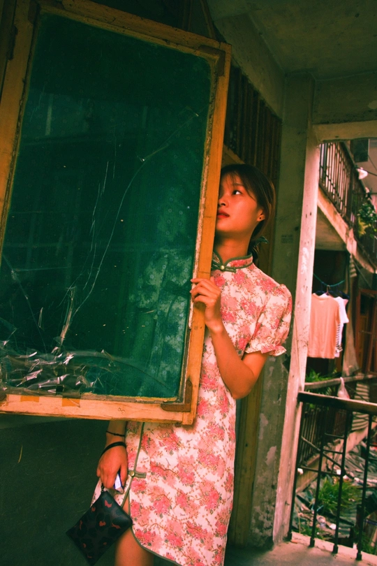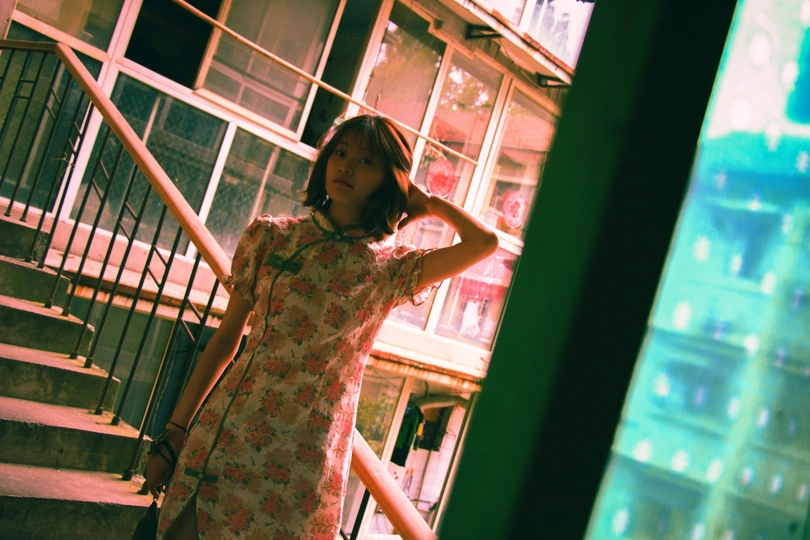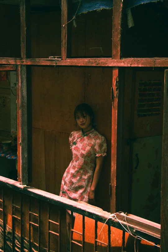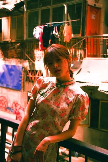 这次调色模仿的是王家卫电影的风格,其风格光线昏暗,色彩浓丽,高光明显且表现出浓烈的黄色,画面整体观感色彩对比明暗对比非常强烈,浓郁的青黄色让人过目不忘。选择了成都鸳鸯楼作为外景场地,特意交代了让麻豆穿旗袍,麻豆表现力也很强,姿势与表情都非常到位。后期处理这方面,只进行了调色和胶片质感处理,请欣赏。
