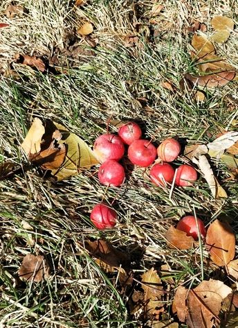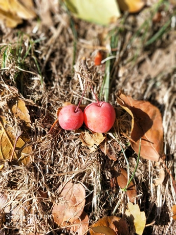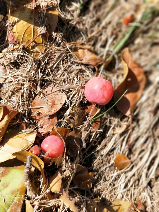 天渐冷了,一些成熟的小果子落在地上无人问津,它们好像挤在一起取暖似的,红红的那么可爱!