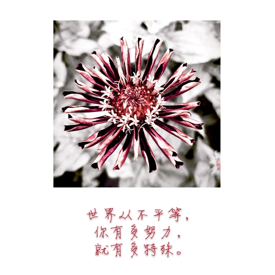 有时,花也可以另类。就像人一样,有温柔的一面,也有叛逆的一面。花的色彩反差感加上文字文艺感又多了一些。