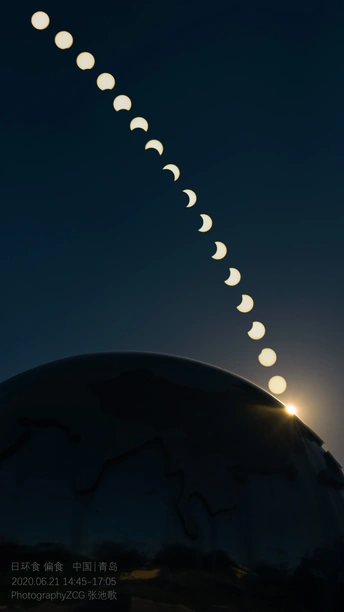 2020年6月21日中国青岛日食。 尼康d610加24-70f2.8的70端拍摄。 1张地球仪前景+1张前景地球仪光晕+16张太阳共18堆栈。@三栖客Henry @Thomas看看世界 @影叶的光色世界 @Daisy姑娘 @hexiang @涂鸦Nic @Franky Wang @Biggs