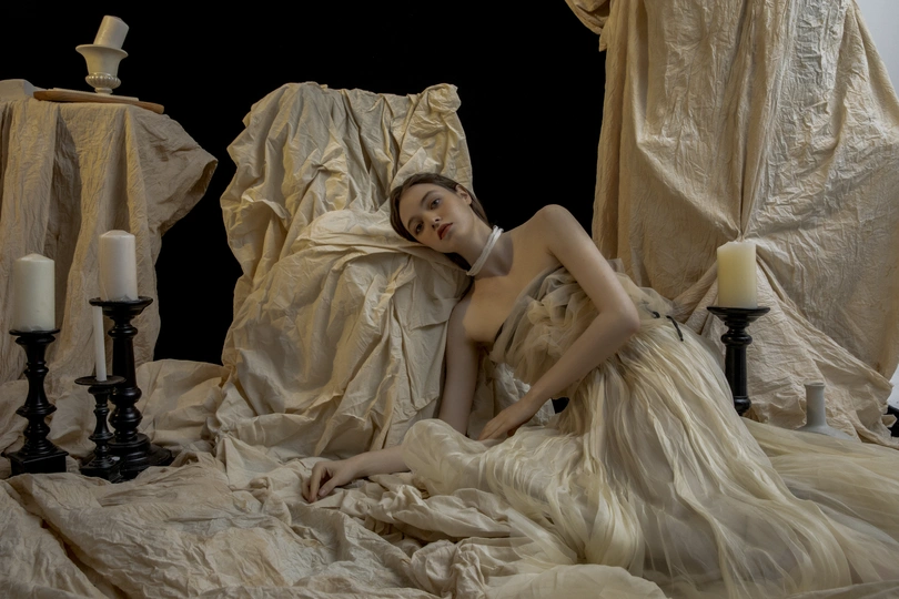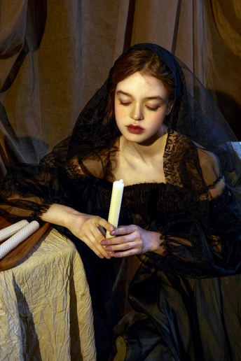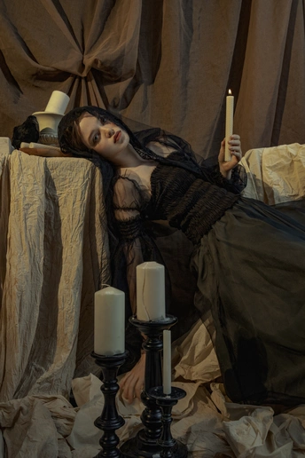 和暗黑小众服装品牌的一次合作,设计师的灵感源于中世纪欧洲流行的鸟嘴医生形象,当时脑海中构思的画面就是沉郁而复古的色调,宛如古典油画的质感。最后拍摄方案和设计师一拍即合,将服装繁复古典的设计和中世纪古典油画的氛围结合在一起,用最直观的视觉画面表现出设计师的服装理念和构思