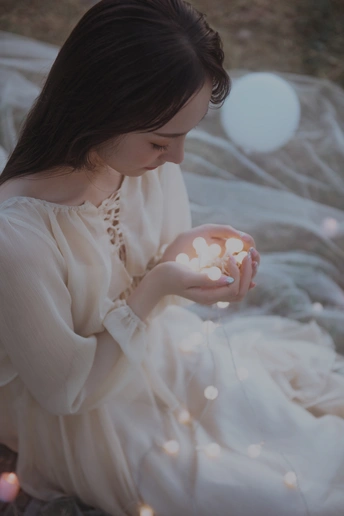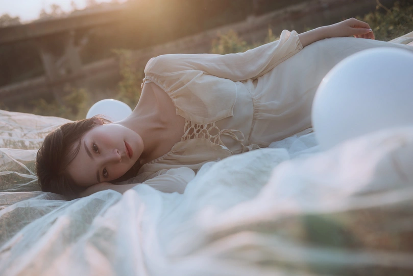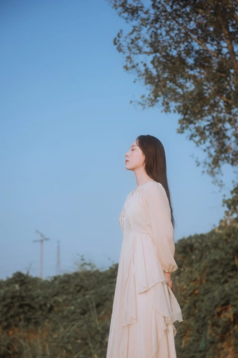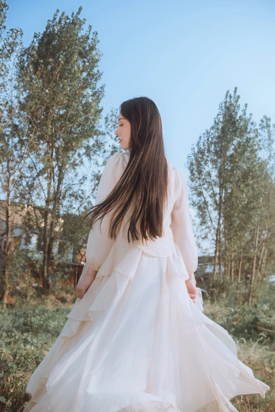 一袭白裙 一处山花漫处 夏天和爱的人在一起 漫山遍野都吹拂着温柔