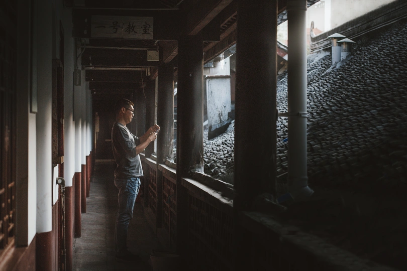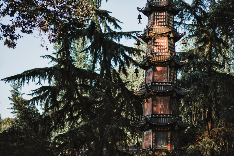 一人一木一心观,闹市中一处红墙之内,难得悠闲之