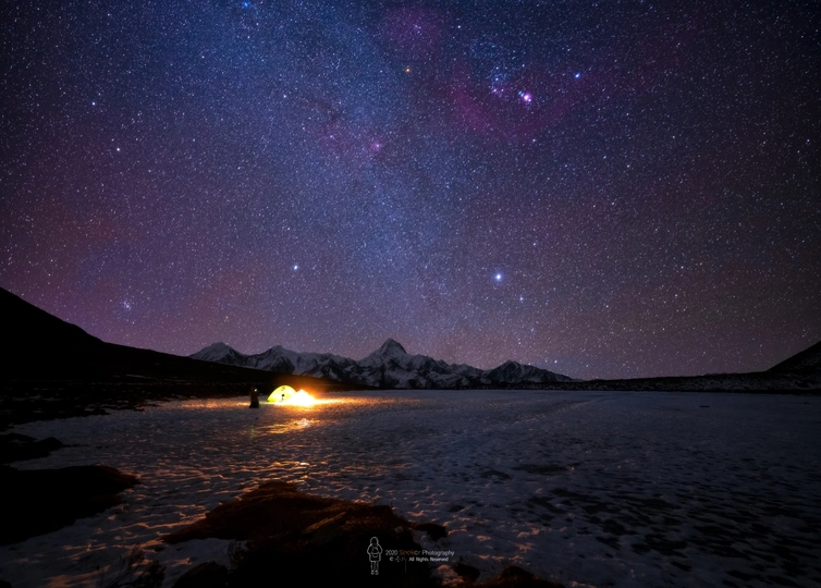 白日乌云滚动,夜晚却晴空万里,在零下十八度的湖面,猎户座闪烁光辉。
