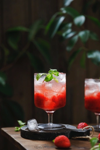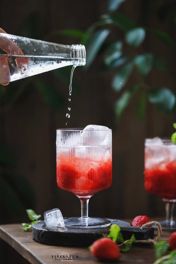 天气太热了,来一杯草莓味的冷饮吧!