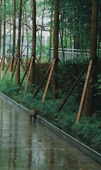 学校的竹林 漫游的狸猫 哦 还有露珠