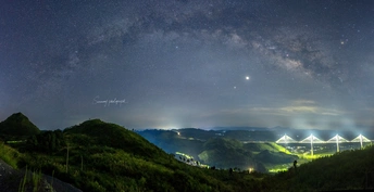 高速路过看到风景优美的赤石大桥,临时下高速找到一座野山,拍下了星空下的赤石大桥。