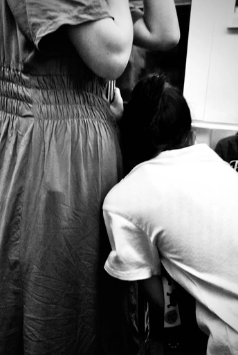 地铁上抓拍到的,感觉很有爱。小妹妹仿佛在说:“弟弟,你在里面舒服吗?”