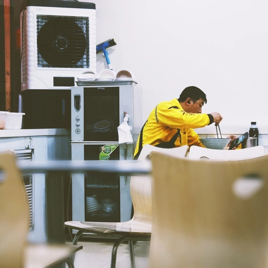 晚九点,一个在路边小面馆狼吞虎咽的外卖的小哥。