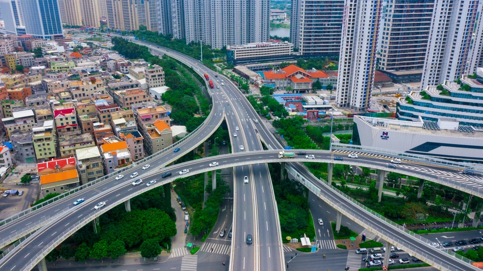 一座座高架桥犹如一道道彩虹似得挂在天空中