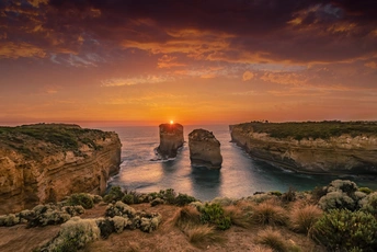如果说大洋路被称为世界上最美的一条沿海公路,那么大洋路的日出日落绝对也是一绝。漫天红霞与这些巨大的岩石组成了一幅绝美的画卷