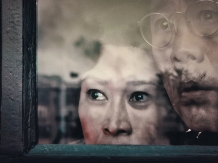 电影八佰里的镜头,通过框景,历史感的画面,犀利的眼神,传递战争的残酷。