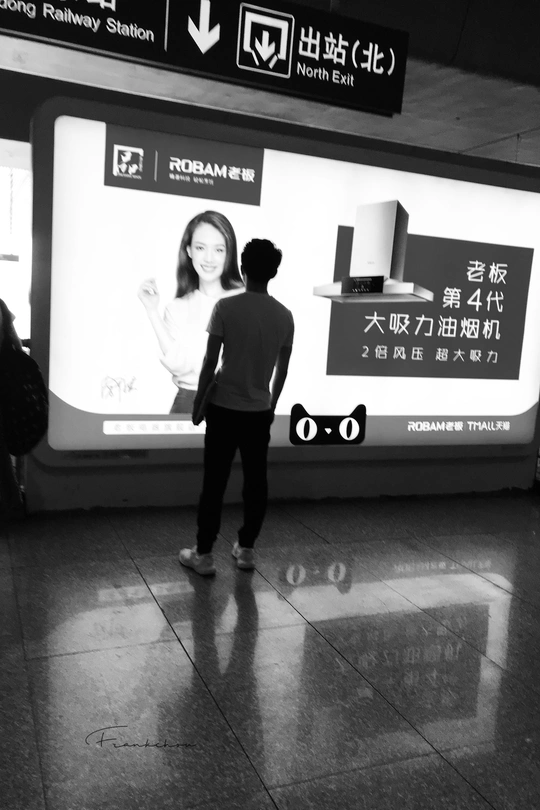 上海虹桥高铁出站口,一男子站在明星舒淇代言的老板油烟机广告牌前,那一刻,他在想些什么,这个问题,困惑了我好几年