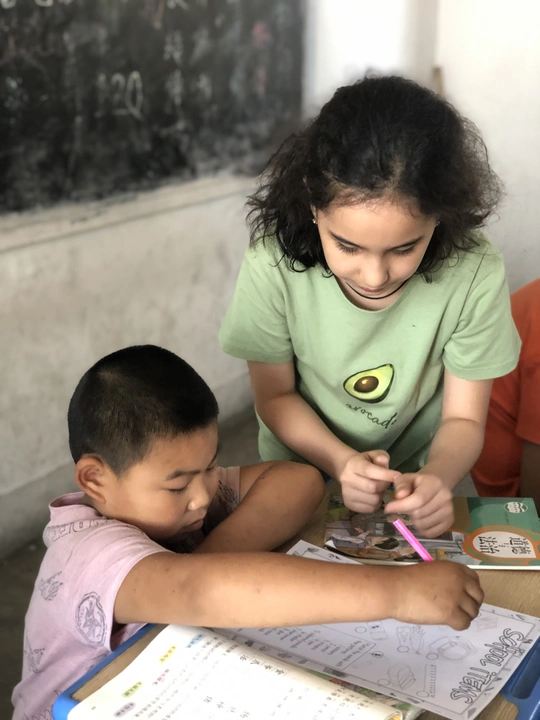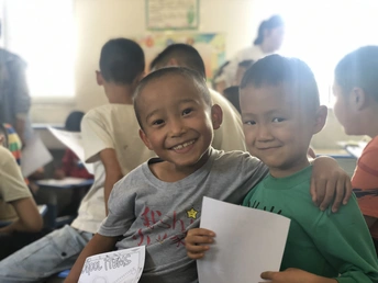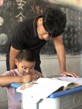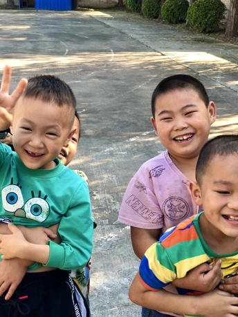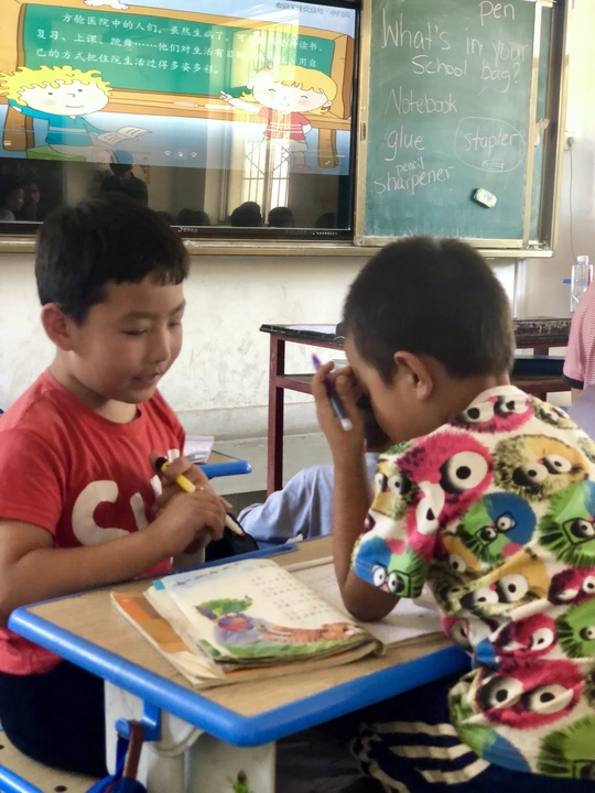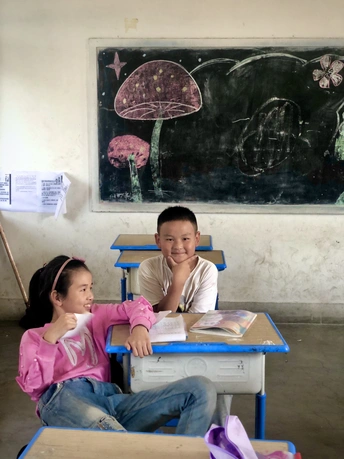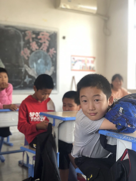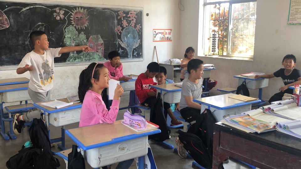 在农村孩子们的笑,他们上课