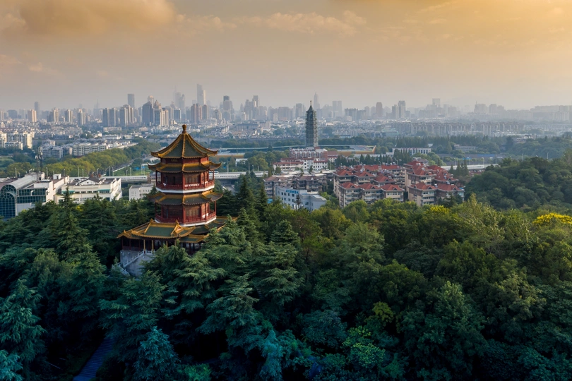 沐浴在晨曦中的南京雨花阁和大报恩寺塔