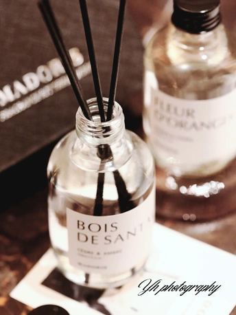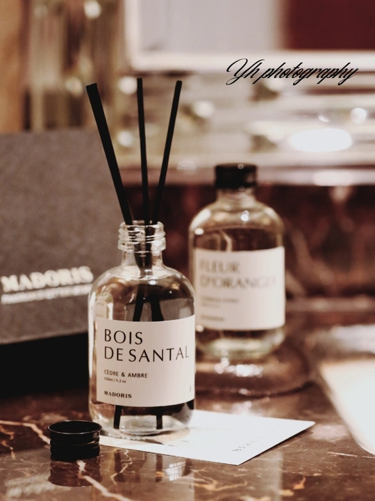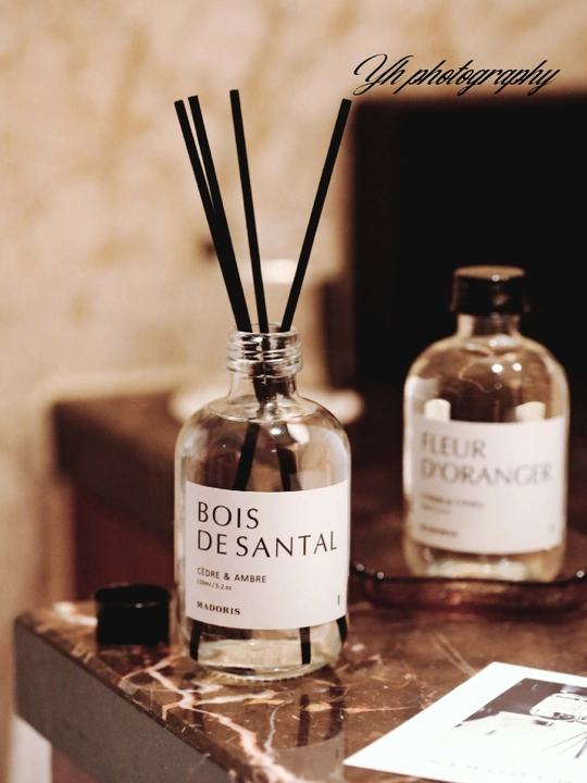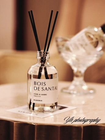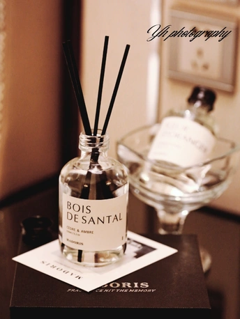 入手这款无火香薰,源于其简约的包装,黑白瓶身搭配黑色藤条。作为一名静物摄影师,会觉得这款香薰适合ins风场景,搭配起来特别好用。