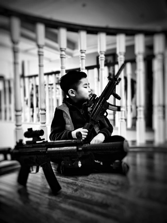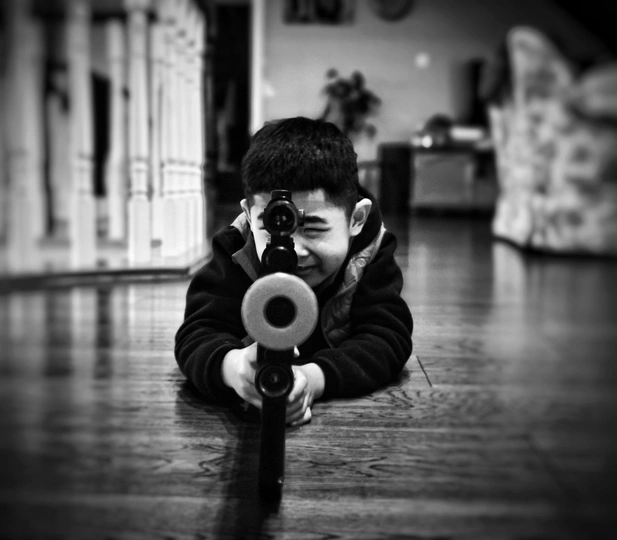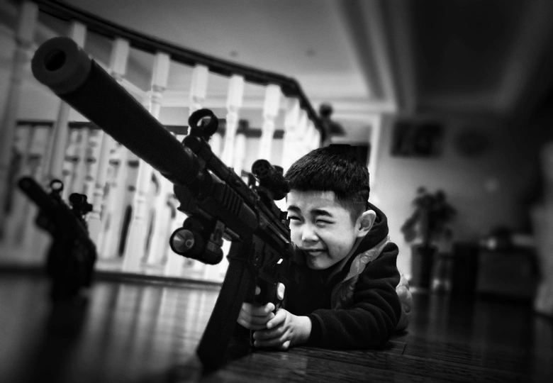 枪是每一个小男孩的最爱,而长阻更让他喜爱。