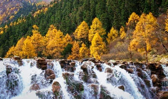 十月底的毕棚沟,金色的落叶松瀑布,美极了